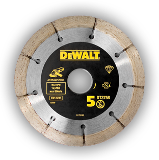 DEWALT have optimised the diamond matrix in both the diamond grinding cups and the segments of the cutting discs which provide up to 450 X the life of conventional abrasives. The large diamond segments on the grinding cups are adhered to the heat treated steel bodies providing increased durability and cup life. The segmented cutting discs are laser welded with heat treated steel bodies which provide increased durability versus standard diamond discs.
