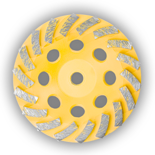 The diamond grinding cups are designed to fit a 125mm angle grinder with the correct guarding (DWE46150 Surfacing shroud). These come in 3 options;